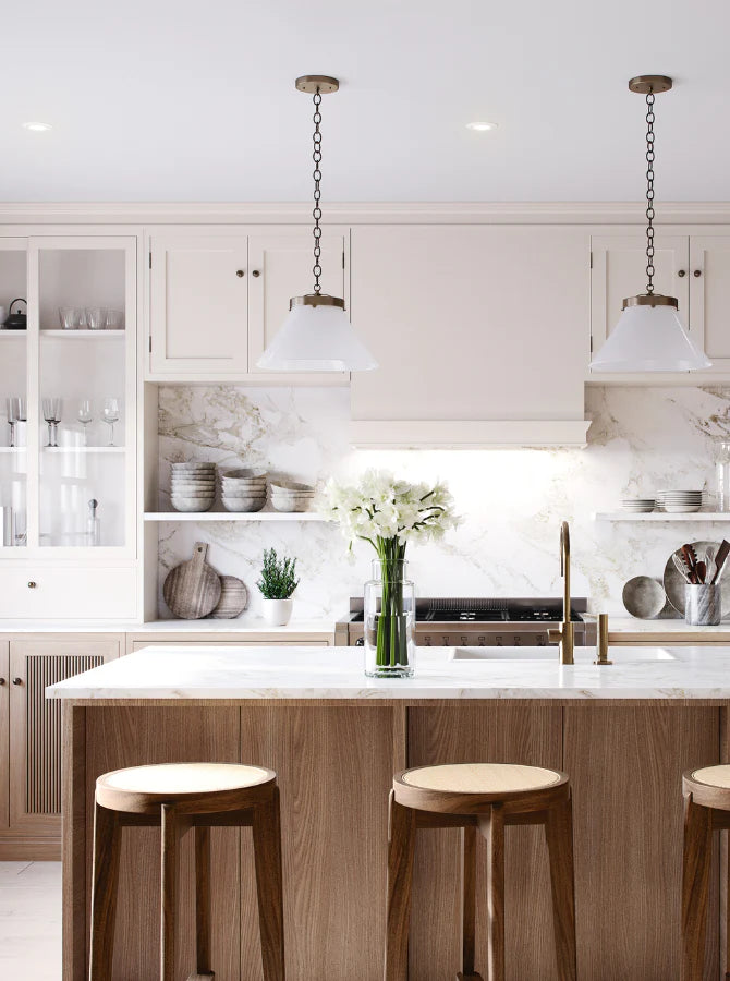 Discover a selection of lighting accessories chosen to complement everyday homes, from modern brass sconces to warm, relaxed pendants.